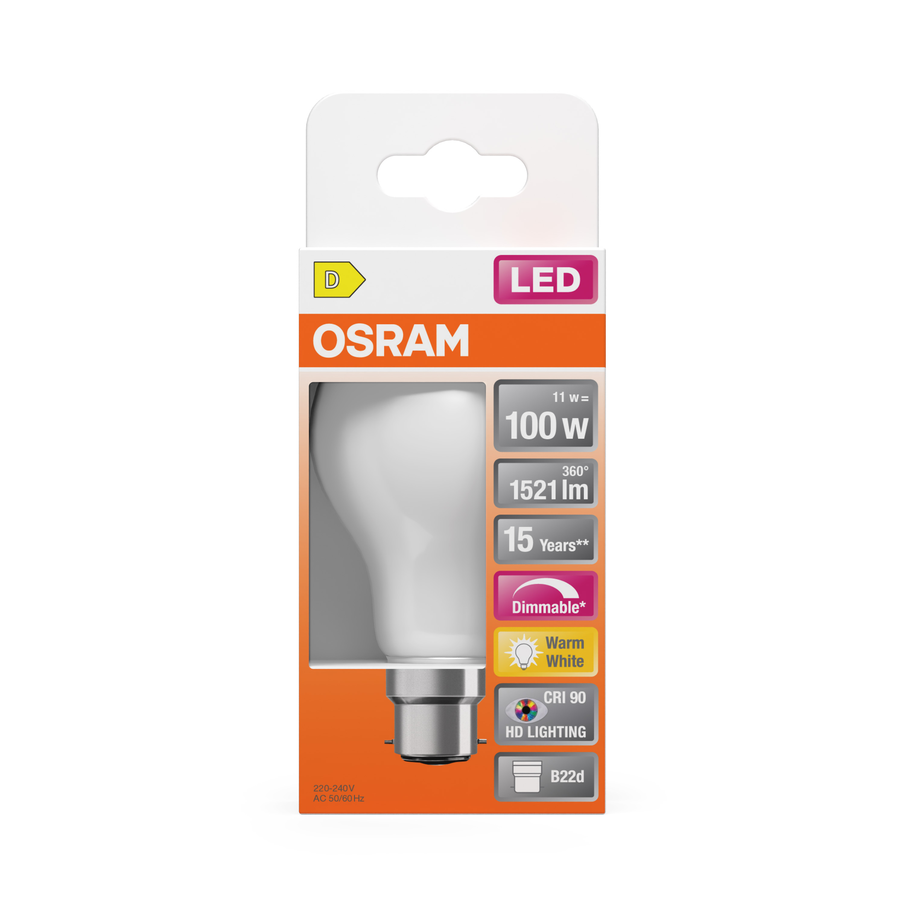 Tipo di cappuccio della sorgente luminosa (o altra interfaccia elettrica) | B22d |