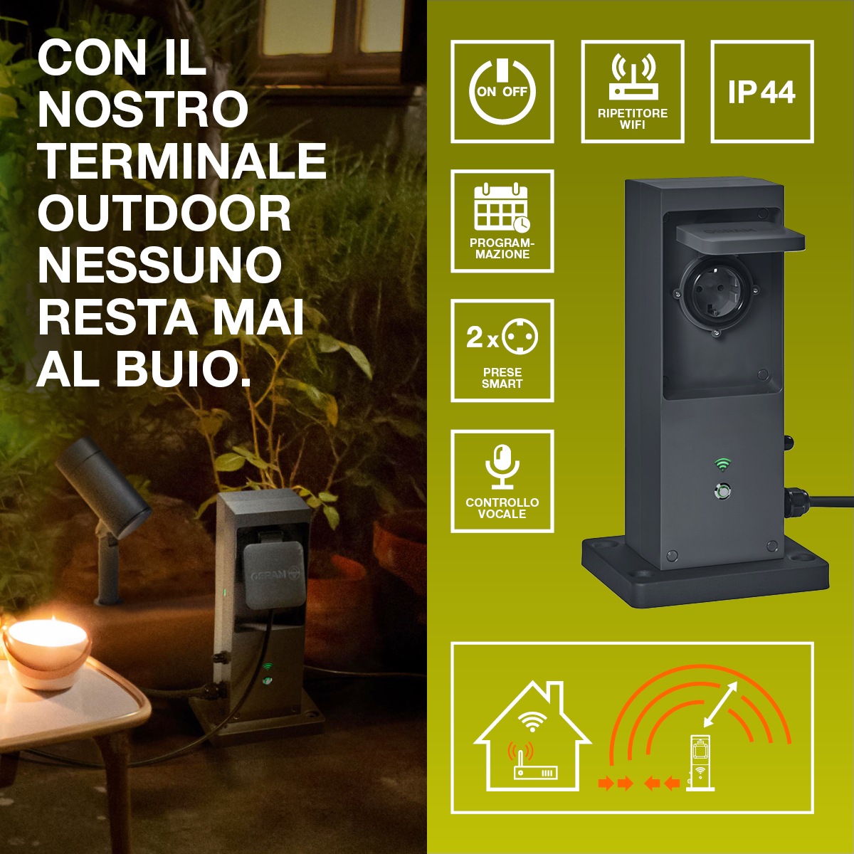 Il ripetitore WiFi integrato estende la zona WLAN fino a 45 metri all'aperto