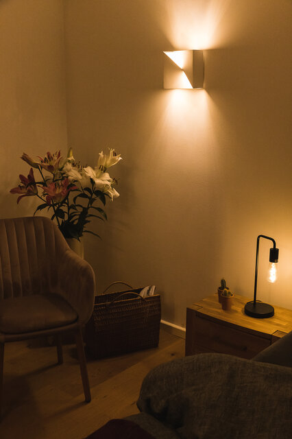 When considering smart indoor lighting you should be aware of the distinctions between general lighting, accent lighting and task lighting. General lighting is usually provided by ceiling and wall lights that make a room bright without glare or shadows. Accent lighting is used to create a pleasant atmosphere in a room by highlighting pictures on a wall or items of furniture, for example. The interplay between light and shadow is used to great effect here. Task lighting, as the name suggests, is used wherever specific tasks are performed, such as cooking, reading or writing.