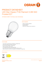 LEDStarClassicP60Filam ent5.9W840FrostedE27en