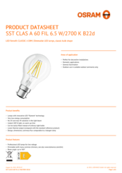 Product remark | All technical parameters apply to the entire lamp, Due to the complex production process for light-emitting diodes, the typical values shown for the technical LED parameters are purely statistical values that do not necessarily match the actual technical parameters of each individual product, which can vary from the typical value, LED lamps contain several electronic components. Under unfavourable conditions these can lead to acoustic noise. In case of resonance even low noise can cause audible effect. Possible factors influencing this are the installation, the design of the lamp holder and the luminaire (acoustic resonance effect) as well as the dimmer or the transformer (harmonics or electronic resonance) |