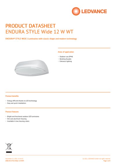 | Nominal wattage | 12.00 W |