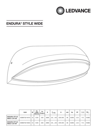 | Total luminous flux of contained light sources | 1220 lm |