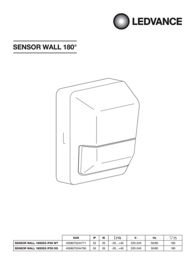 | Sensor detection angle | 180 ° |