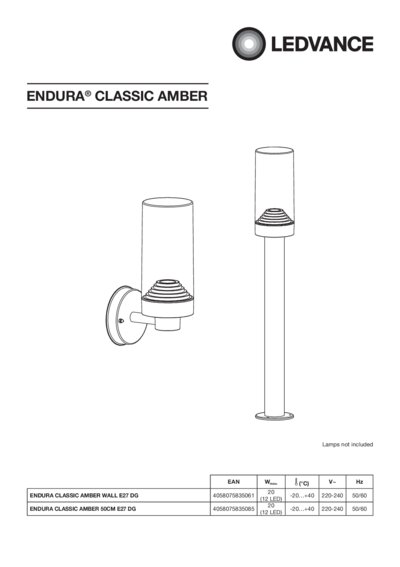 | Product remark | Maximum bulb wattage: 20W (12W LED) |