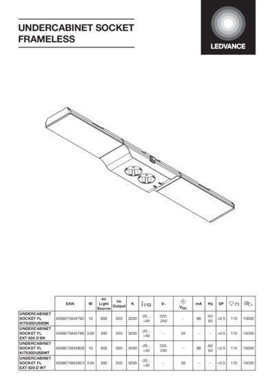 | Mounting location | Wall, Cabinet undersides |