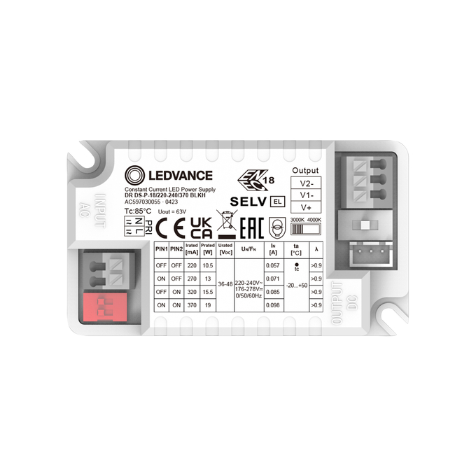 Corrente in uscita | 370 mA, 320 mA, 270 mA, 220 mA |