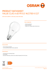 Nota a pié pag. utilizzata per prodotto | Tutti i parametri tecnici si applicano alla lampada completa, A causa del complesso processo di produzione dei diodi a emissione luminosa, i valori tipici forniti per i parametri LED tecnici sono puramente valori statistici che non corrispondono necessariamente ai parametri tecnici effettivi di ciascun prodotto singolo, che può variare dal valore tipico. |