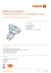 Nota a pié pag. utilizzata per prodotto | Tutti i parametri tecnici si applicano alla lampada completa, A causa del complesso processo di produzione dei diodi a emissione luminosa, i valori tipici forniti per i parametri LED tecnici sono puramente valori statistici che non corrispondono necessariamente ai parametri tecnici effettivi di ciascun prodotto singolo, che può variare dal valore tipico. |